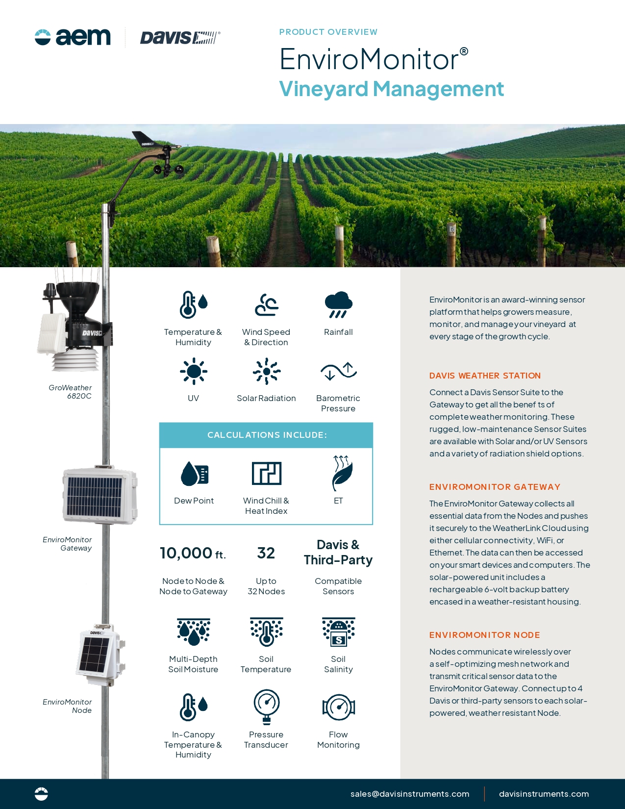 Μετεωρολογικός σταθμός : Davis Vantage Pro2 GroWeather® Ag Focused Sensor Suite 6820 (με αισθητήρες θερμοκρασίας και υγρασίας αέρα, ανεμόμετρο, βροχόμετρο και ηλιακής ακτινοβολίας)